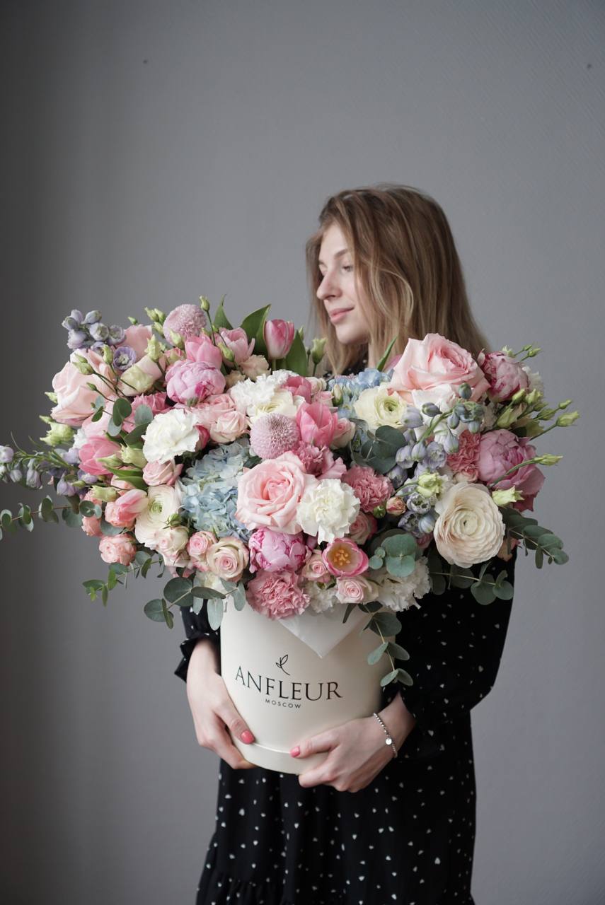 Гортензии ,Дельфиниум ,Пионы ,Ранункулюсы ,Розы ,Розы кустовые ,Эвкалипт ,Эустома |